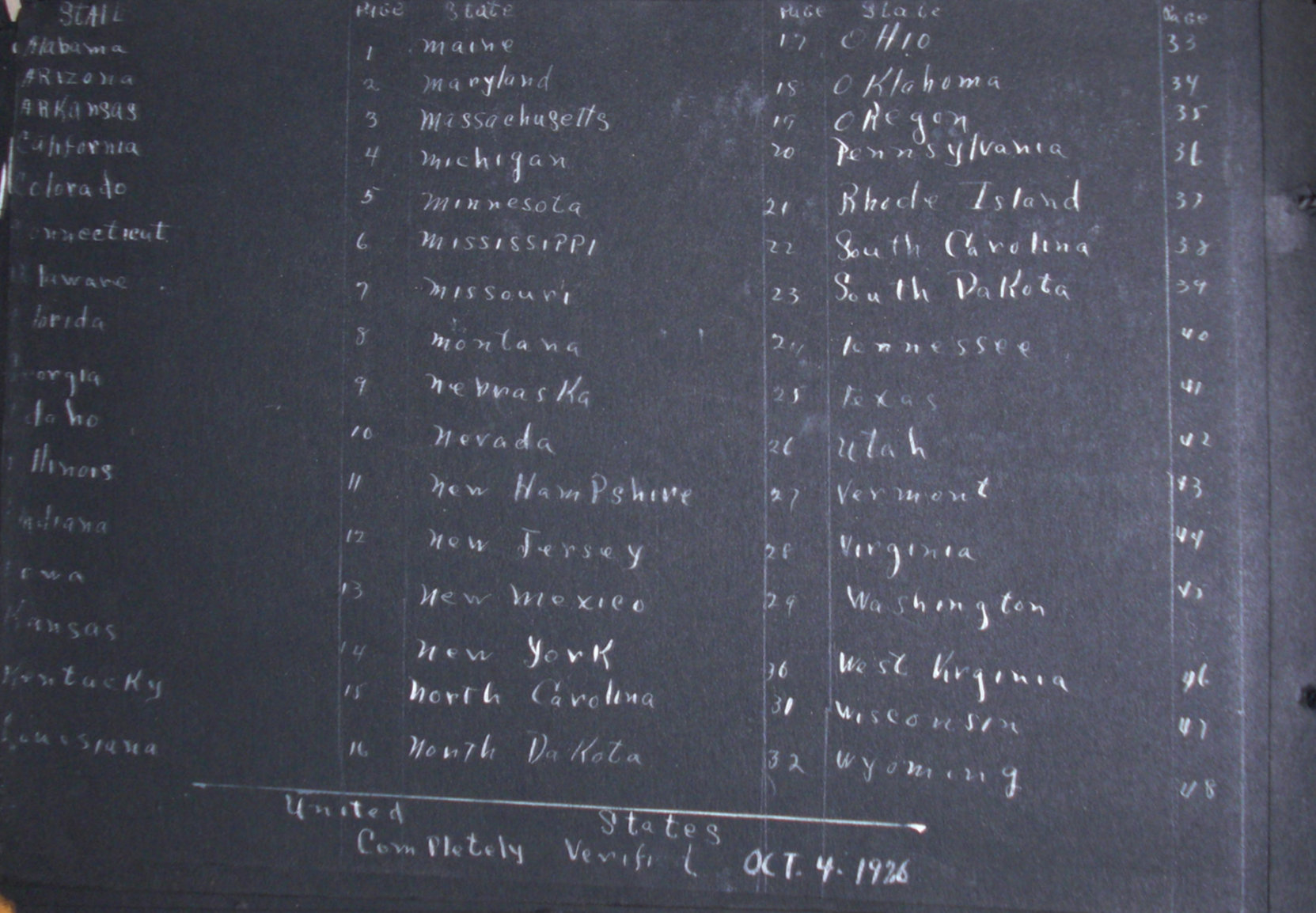 At the end of the homemade album a log of all stations and the number of stations for which stamps had been secured in each.