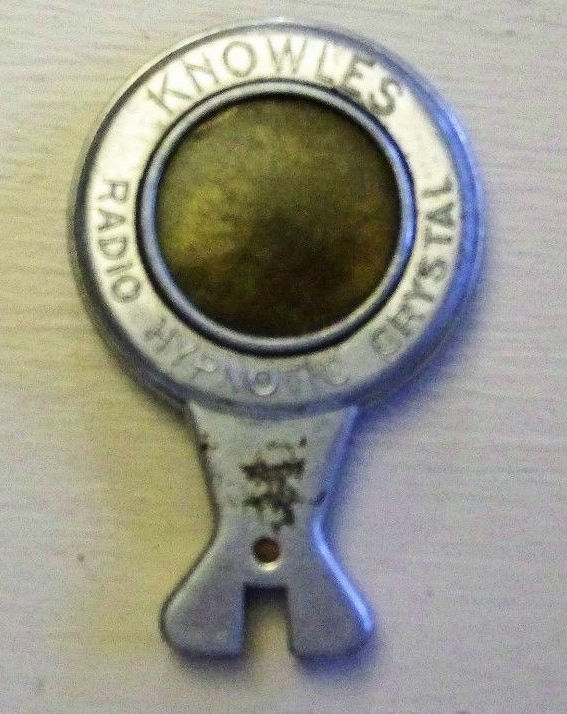 Knowles Radio Crystal, Quack medical device which supposedly created great calm and reduced depression by staring at the central portion which was filled with a sand-like substance and which would move about in response to motion. c. 1930