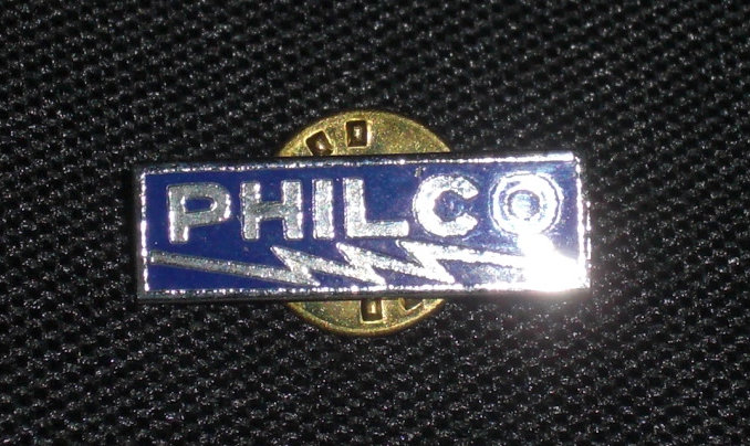 Philco pin, 1940s Pooley was a major furniture manufacturer who developed a line of cabinets fitted to various radios manufactured by Atwater Kent. This cabinet, c. 1927, was made to hold an AK Model 20 (compact) which sat atop. The left door covered compartment for batteries and the right covered a built-in speaker. The sliding tray provided a paper area to make notes on the dial settings for given radio stations.