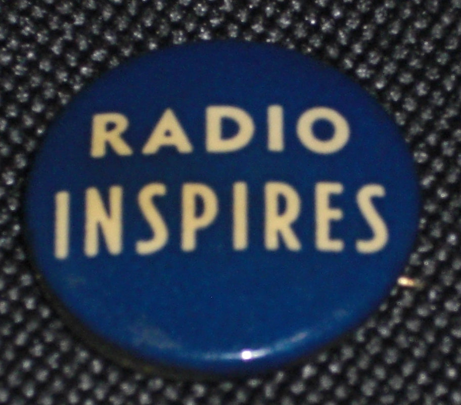Day at a Glance allowed marking programs one wished to hear on the paper cards (one for each day) c. 1930. Pinback, purpose and date unknown.