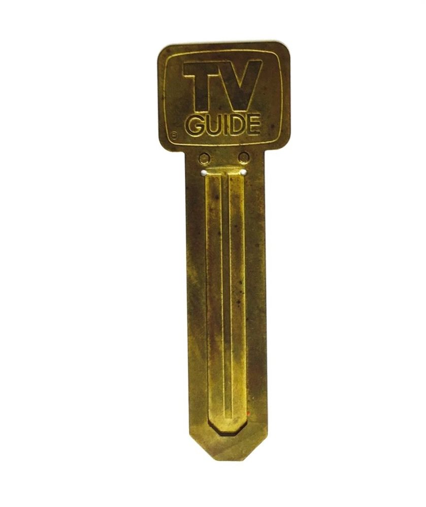 Sylvania dealer's clock, c. 1970. TV Guide brass book mark, c. 1970