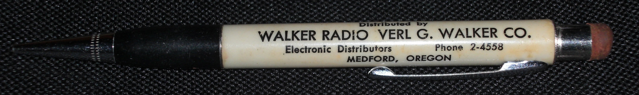 Mechanical pencil, c. 1955. Walker Radio was an electronics supply house in Medford, OR