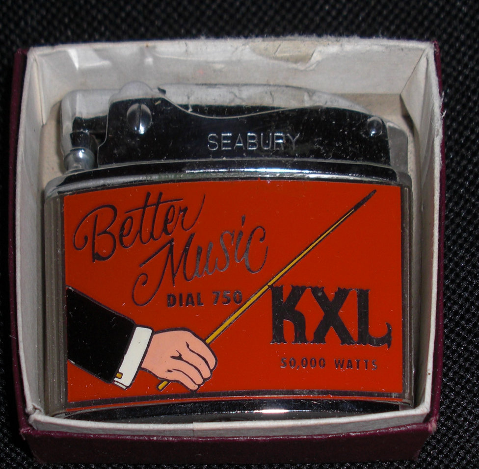 KXL Portland OR cigarette lighter in box. Station was on a beautiful music format