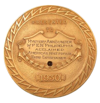 Radio Digest (magazine), Diamond Meritum award for program excellence. This one was issued to the WPEN "Mystery Announcer". The award was given based on ballots submitted by Radio Digest subscribers.