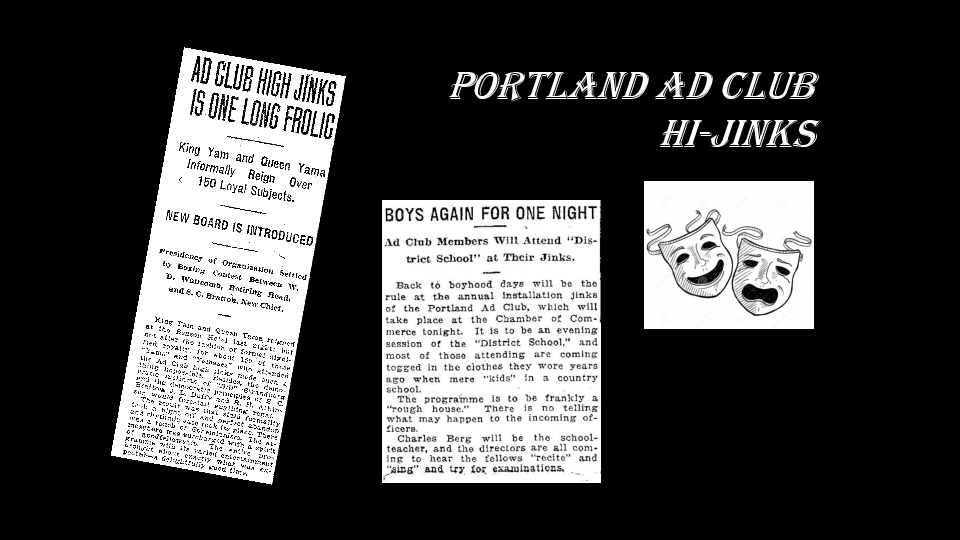 Berg was a prominent retailer with a shop catering to higher fashion items for women. He was also active in the Portland Advertising Club (commonly known as the Ad Club) which annually put on a variety show in which Ad Club members performed with ticket proceeds going to a local charity. Piper, Callvert and Berg met (apparently shortly after New Years Day, 1923, kicked around ideas for a program and Berg agreed to enlist some fellow Ad Club members for the effort.