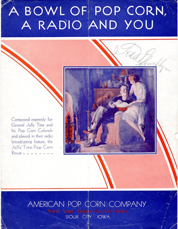 Some songs like "A Bowl of Pop Corn, A Radio and You" just reflected radio's increasingly prominent role.