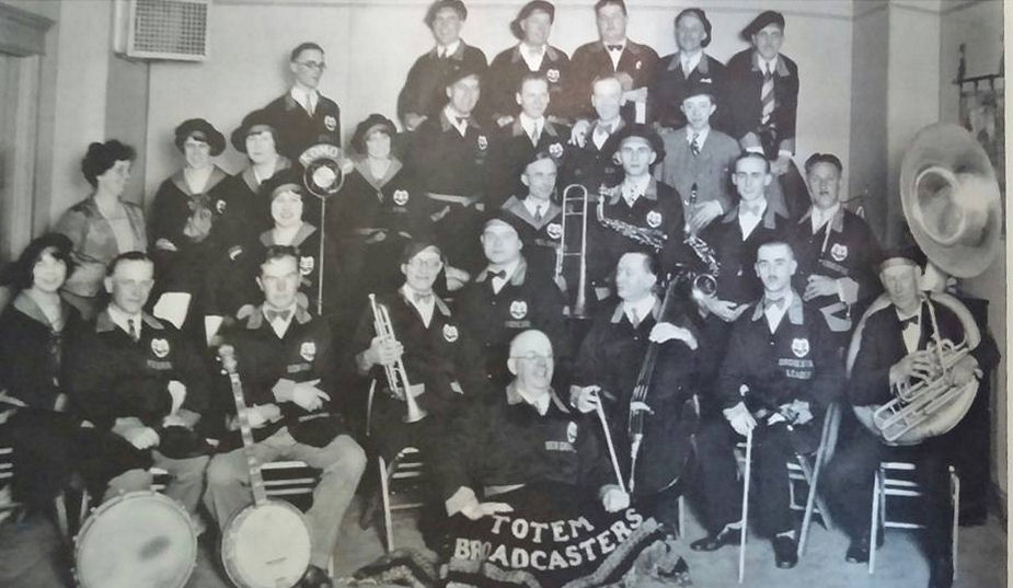 Totem Broadcasters band. Note the Totem Broadcasters logo on their jackets