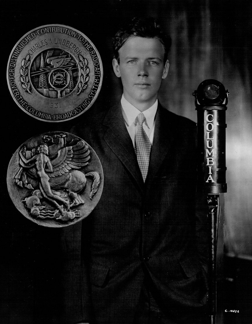 (photo) Charles Lindberg receiving CBS Distinguished Service Medal