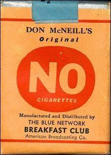 No cigarettes, 1943. The Breakfast Club's response to a national cigarette shortage during World War II. The box contained nothing but air.