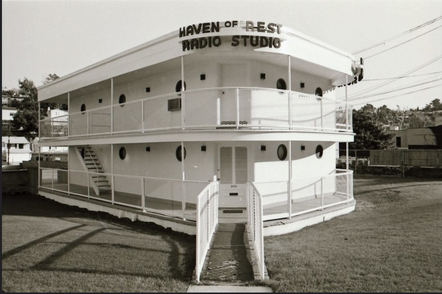 Broadcasting initially from the studios of the Los Angeles stations from which it originated, in 1941 the Crew of the Good Ship Grace (the actual name of the owner) constructed a radio/recording studio designed like a ship in an area adjacent to Hollywood. Haven of Rest broadcasts continued in that location until 1998 and it continues to be used as a recording studio after the broadcast operation moved to other quarters.