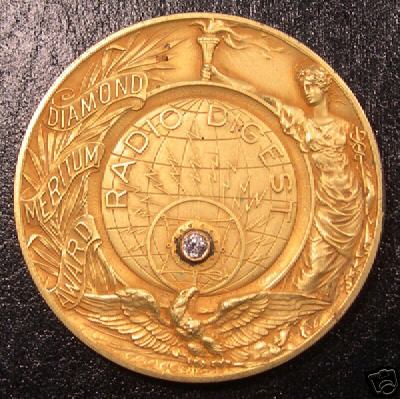 Radio Digest magazine, 1930 Diamond Meritum award medal, presented to Philadelphia WPEN's "Mystery Announcer." see also Mystery Announcer wins Diamond Meritum Award, Radio Digest, Nov, 1930)